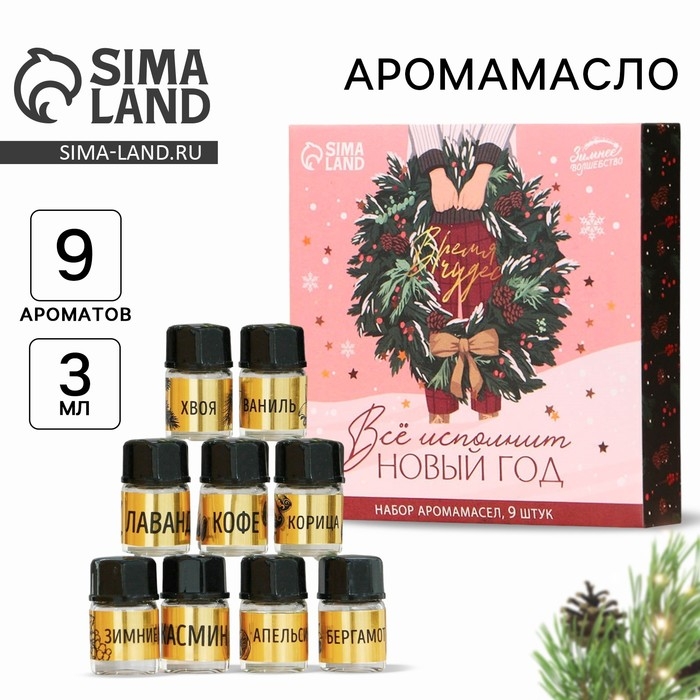 Новогодние аромамасла «Новый год: Время чудес», Набор новогодних 9 шт, 3 мл