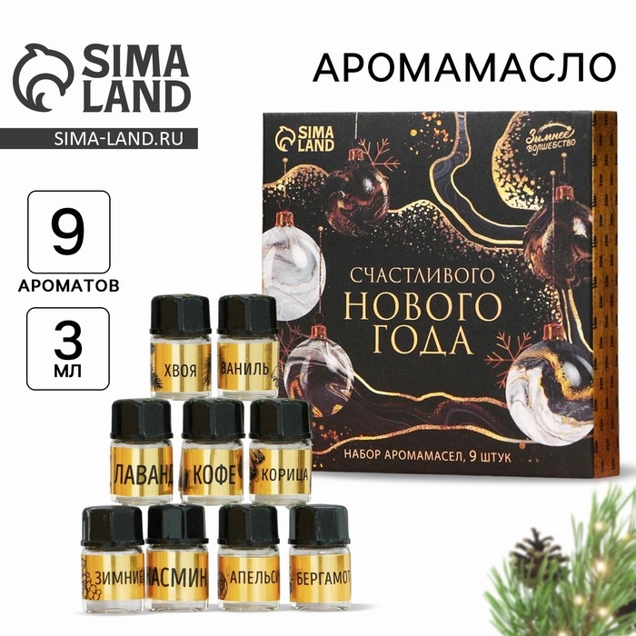Новогодние аромамасла «Новый год: Счастливого нового года», Набор новогодних 9 шт, 3 мл