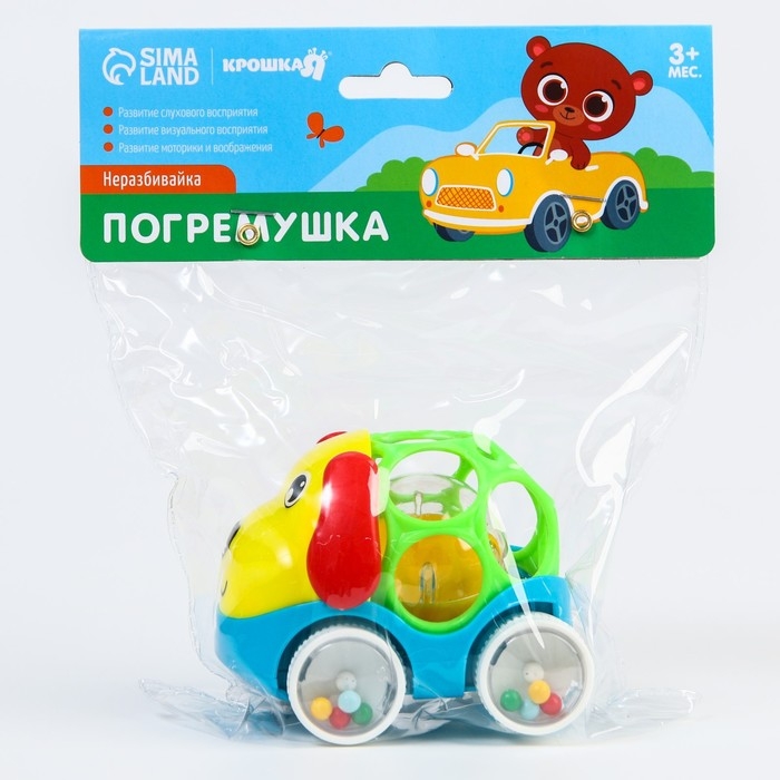 Машинка - погремушка «Собачка», с эластичными элементами, Крошка Я