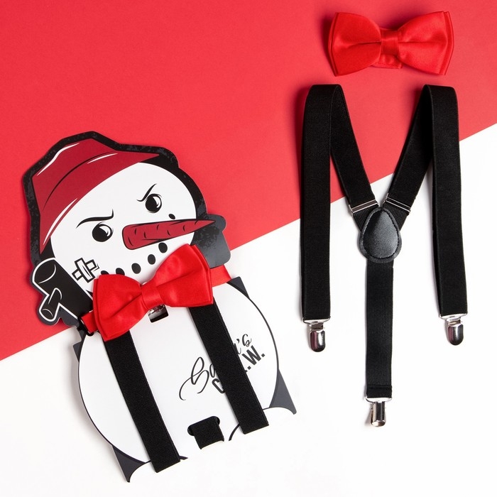 Набор мужской KAFTAN подтяжки и галстук-бабочка "Снеговик"