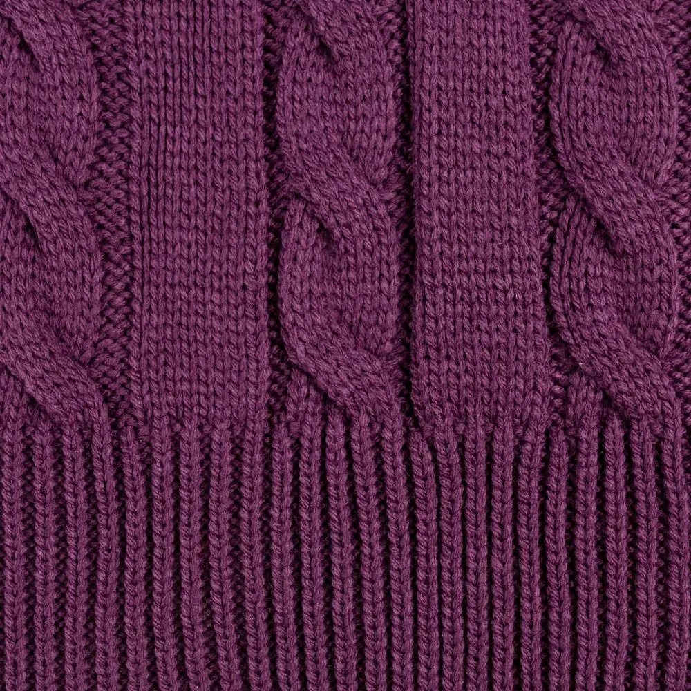 Модель: однотонный плед с фактурной вязкой, которая позволяет сделать его воздушным и объемным. Чередуя различные типы петель на гладком полотне, можно вывязать любую графику — логотип, текст, товарный знак.