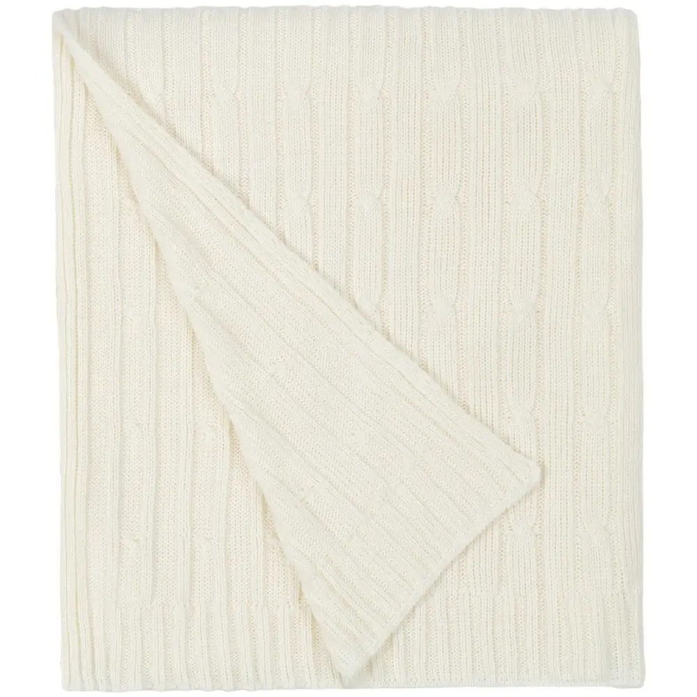 Модель: однотонный плед с фактурной вязкой, которая позволяет сделать его воздушным и объемным. Чередуя различные типы петель на гладком полотне, можно вывязать любую графику — логотип, текст, товарный знак.