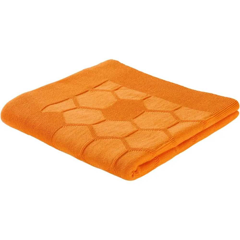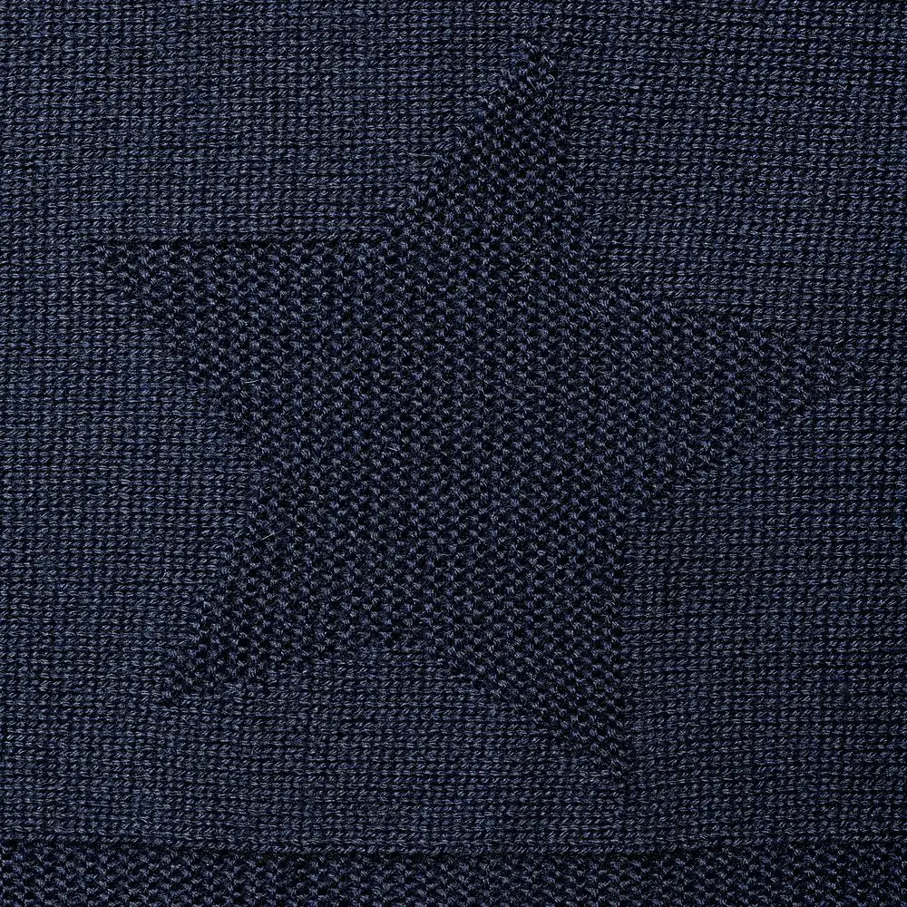 Модель: однотонный плед с фактурной вязкой, которая позволяет сделать его воздушным и объемным. Чередуя различные типы петель на гладком полотне, можно вывязать любую графику — логотип, текст, товарный знак.