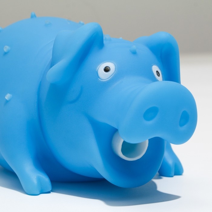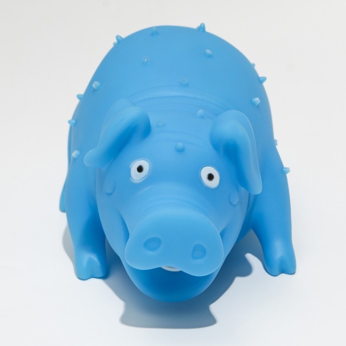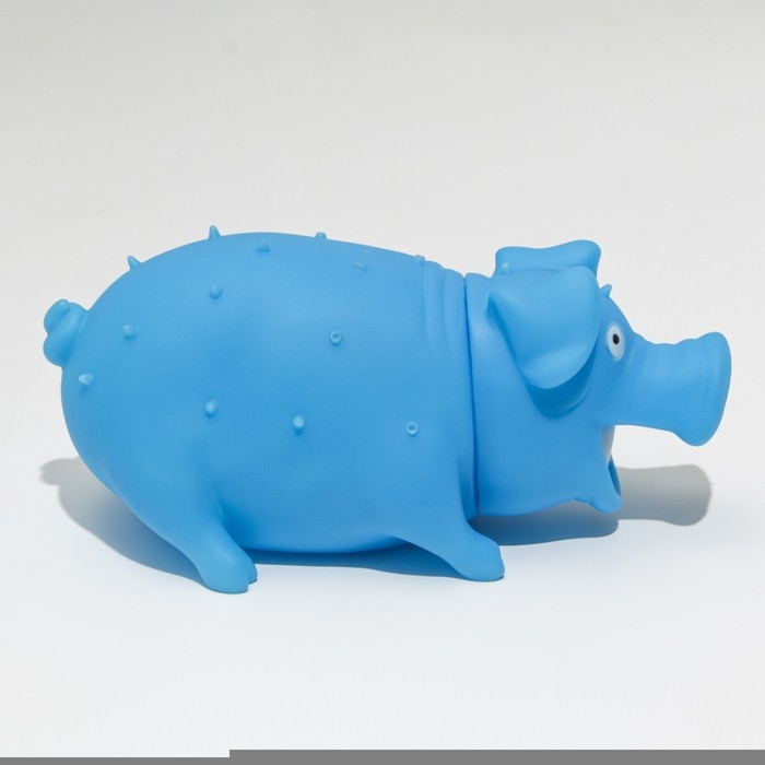 Игрушка пищащая "Весёлая свинья" для собак, хрюкающая, 19 см, голубая