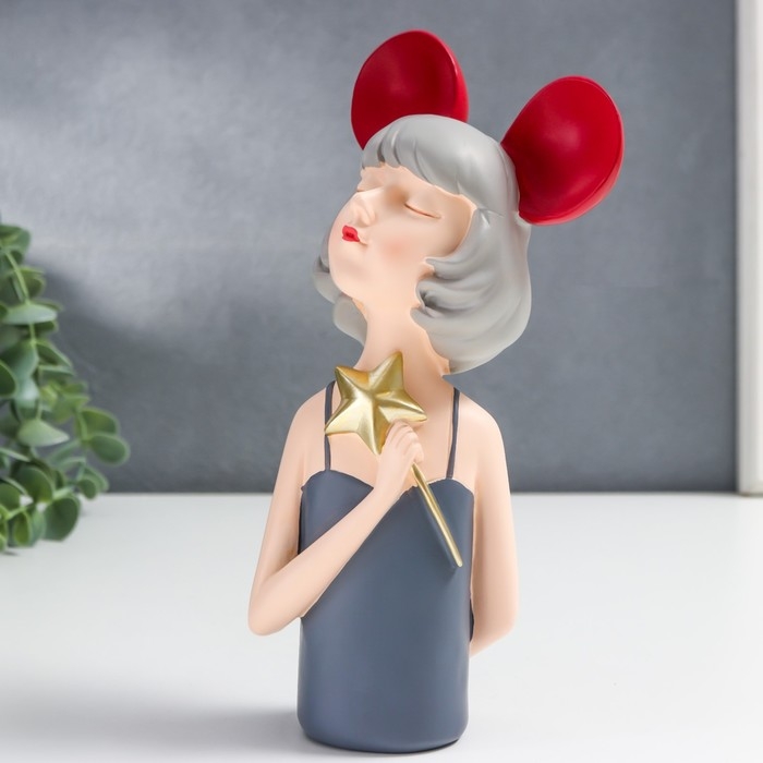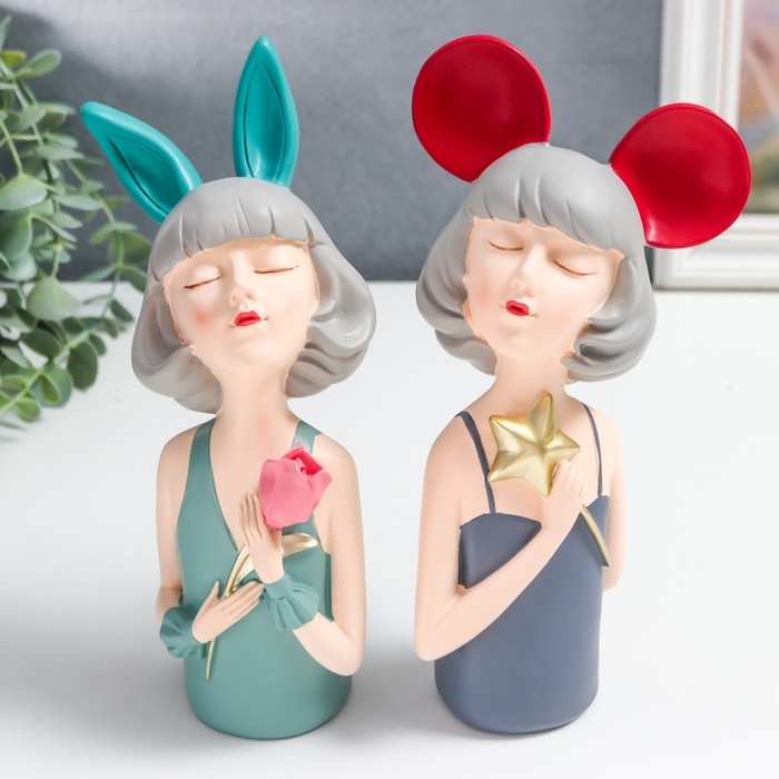 Сувенир полистоун "Девушка с ушками с цветком/звездой" МИКС 7х5х21,5 см