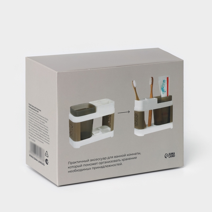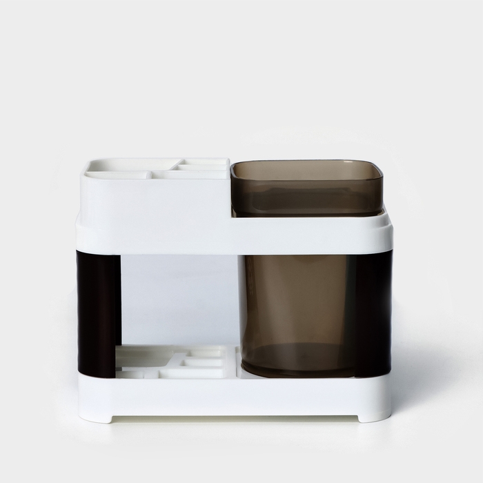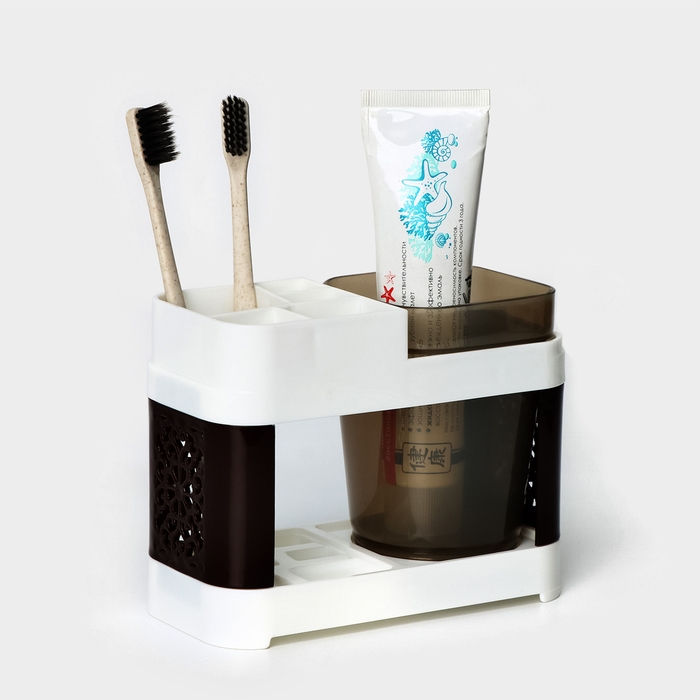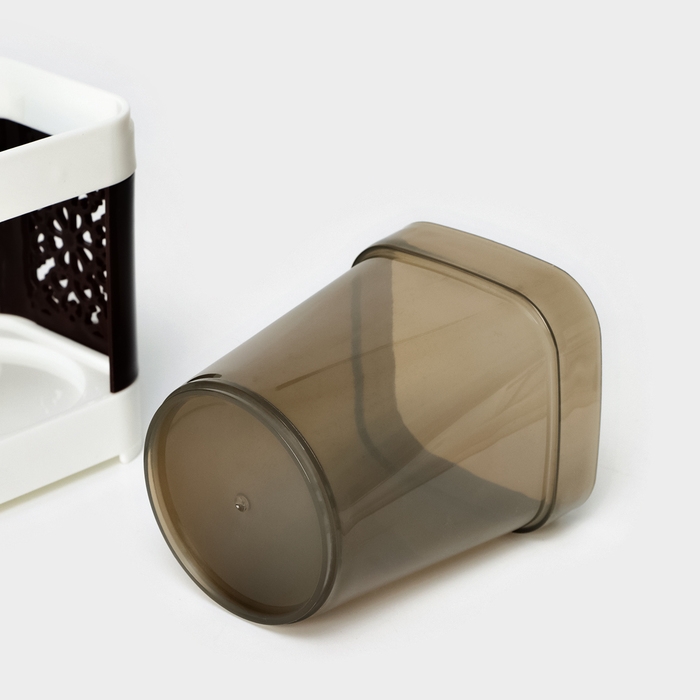 Подставка для зубных щёток и пасты со стаканом, 15×7×12 см, цвет коричневый