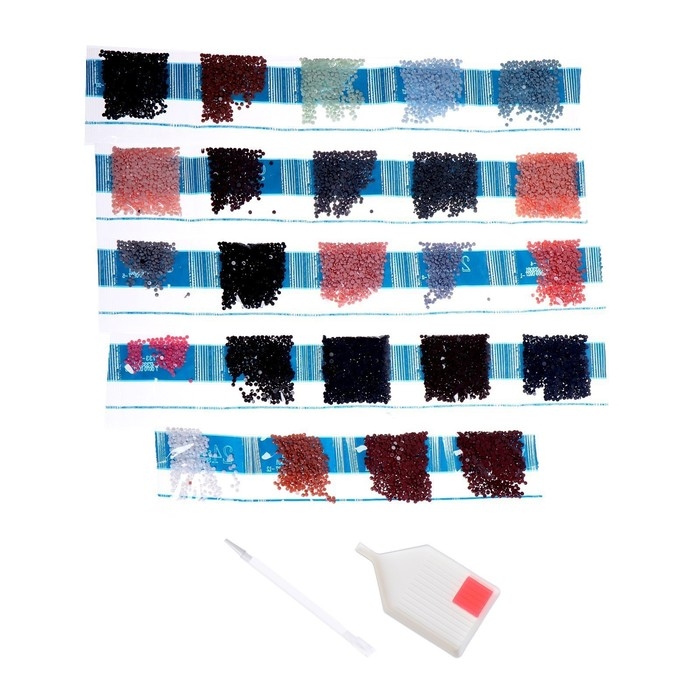 Часть изображения предстоит заполнить стразами, другая часть напечатана на холсте-основе. Поэтому набор подойдёт для тех, кто впервые пробует свои силы в этой технике или любит быстро добиваться результата.