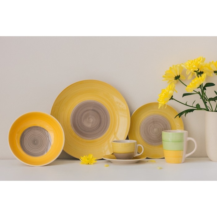 Тарелка керамическая обеденная Доляна «Бутон», d=27 см, цвет жёлтый