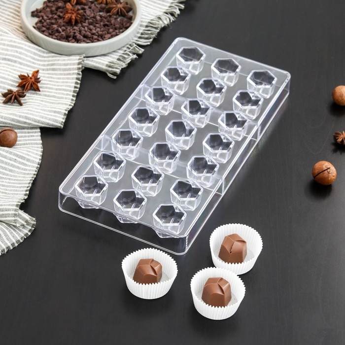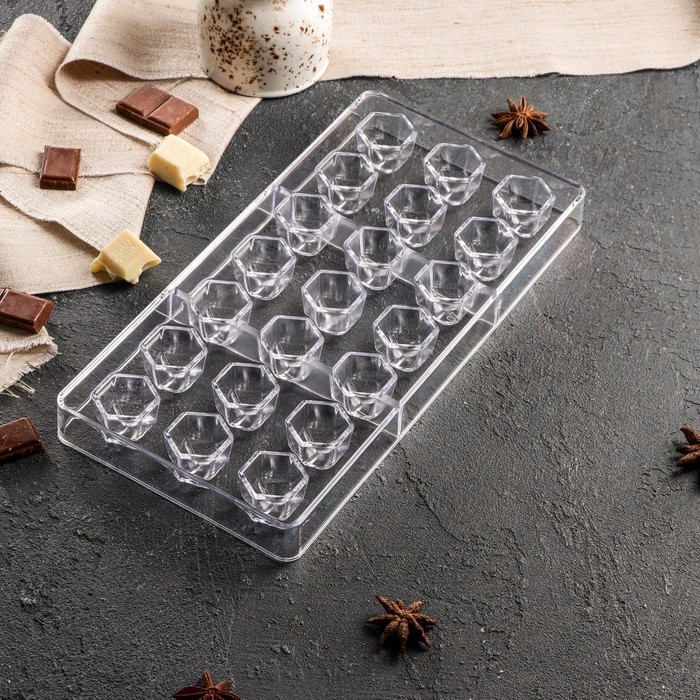 Форма для конфет и шоколада KONFINETTA «Секрет», 27,5×17,5×2,5 см, 21 ячейка 2,5×2,2×2 см, цвет прозрачный