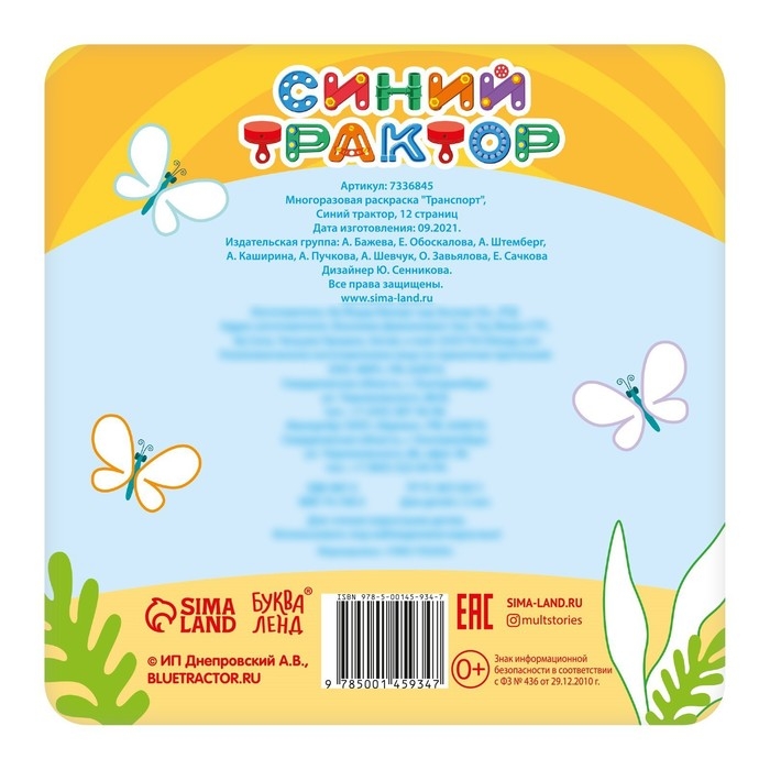 Многоразовая раскраска «Транспорт», 12 стр., 16 × 16 см, Синий трактор