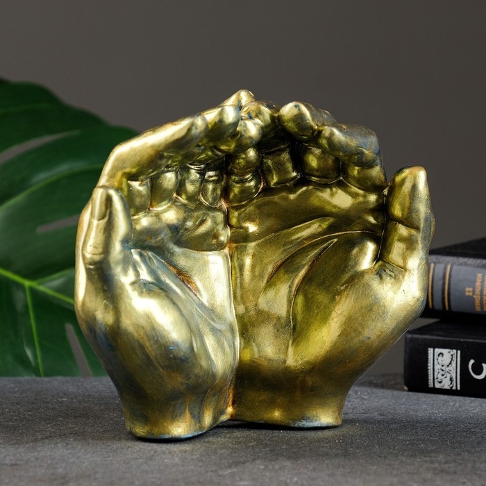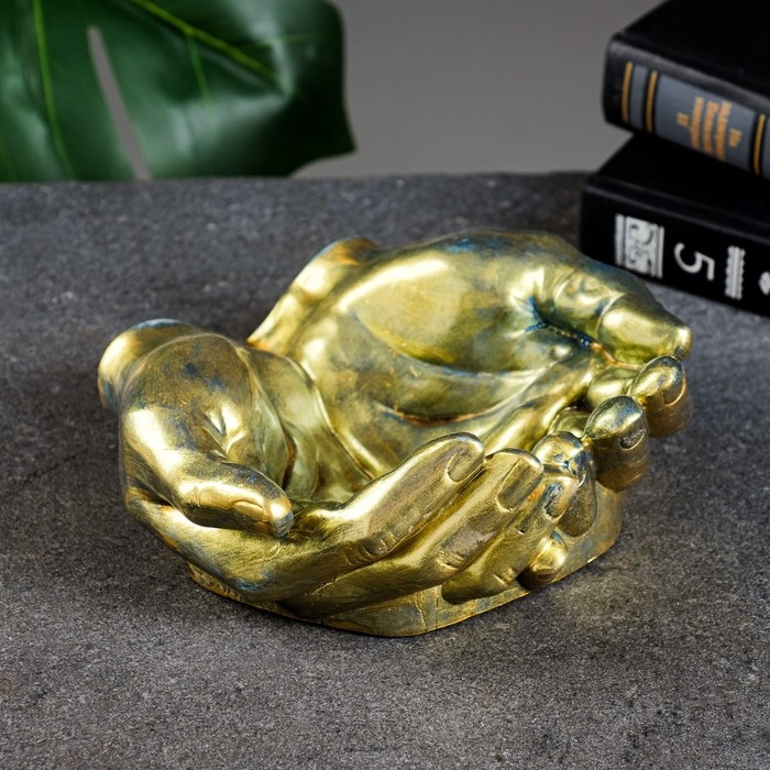 Конфетница "Ладони" состаренное золото, 15х16х7см
