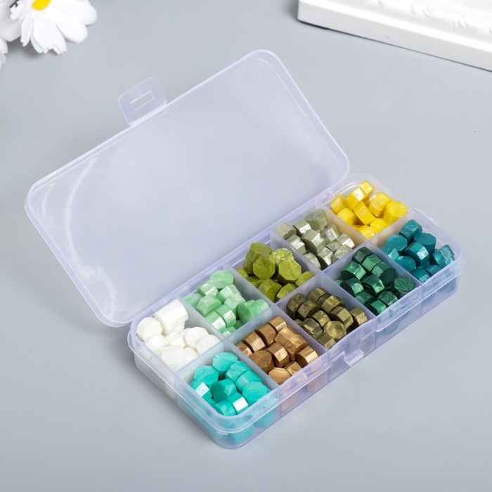 Набор сургуча "Оттенки зелёного" перламутр 10 цветов 12,7х6,5х2 см