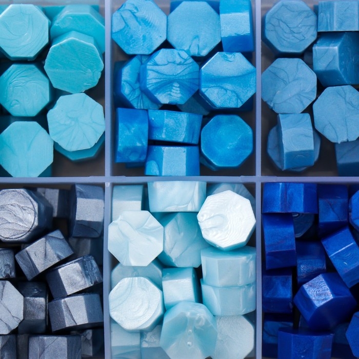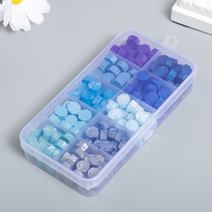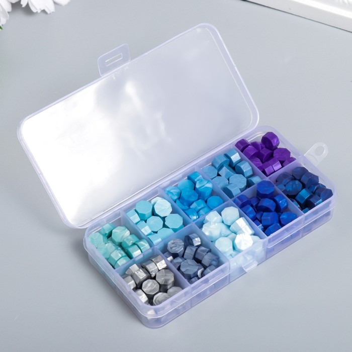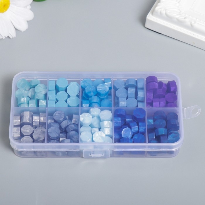 Набор сургуча "Оттенки синего" перламутр 10 цветов 12,7х6,5х2 см