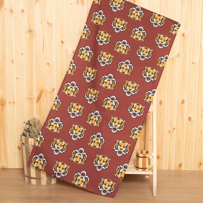 Полотенце Этель "Тигр" бордовый 70х146 см, 100% хлопок 160гр/м2