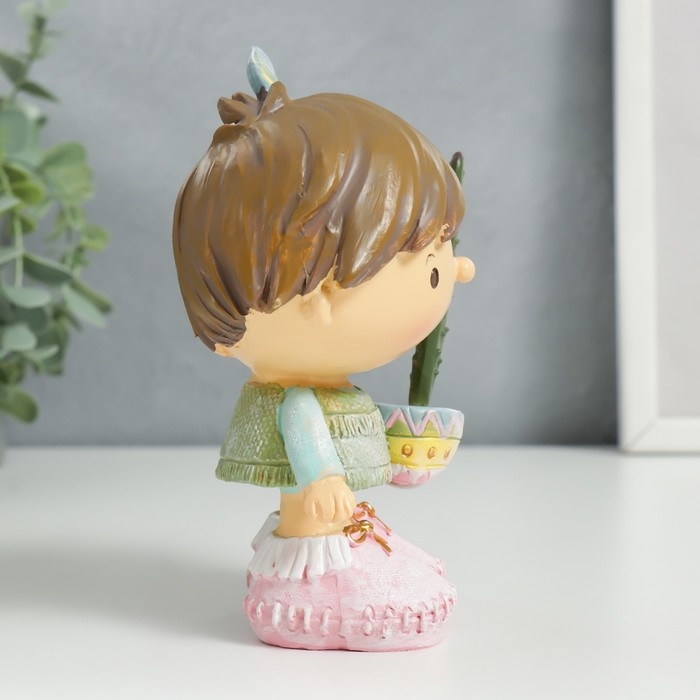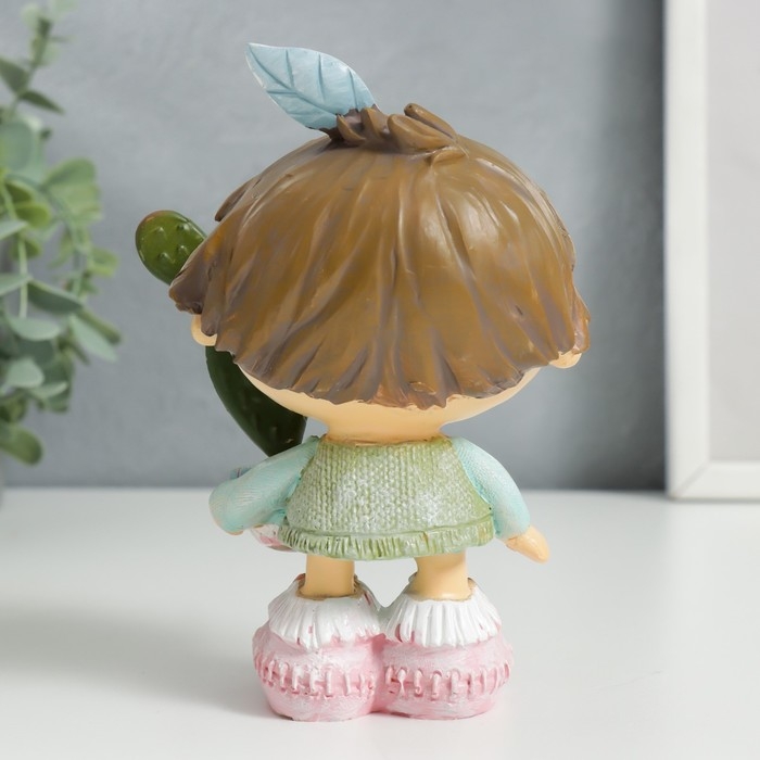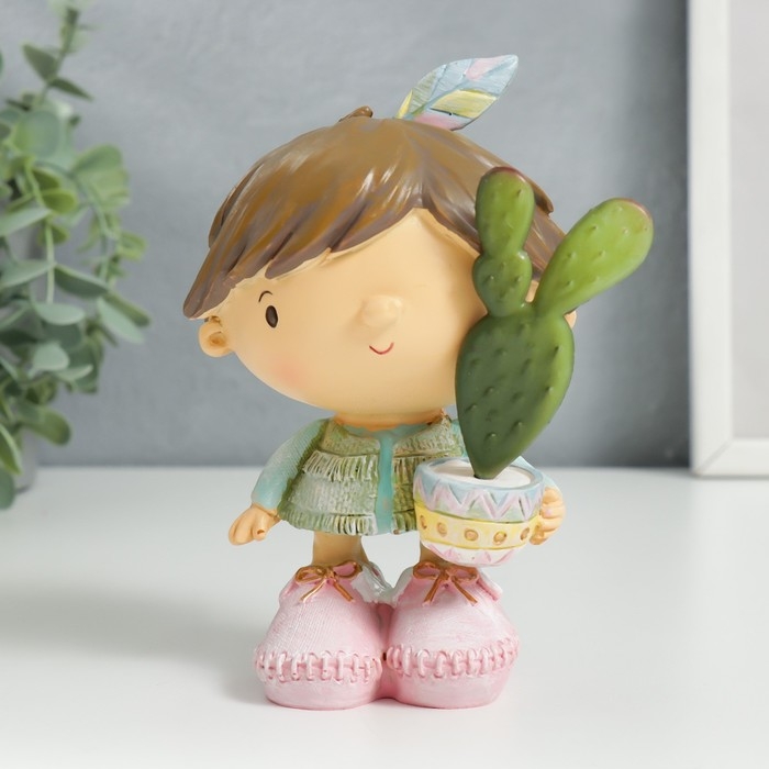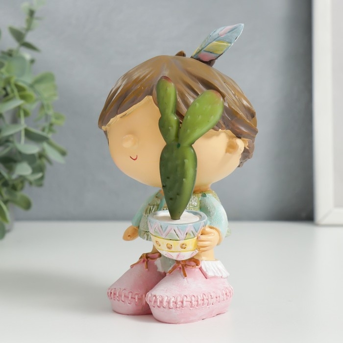Сувенир полистоун "Малыш с кактусом в горшочке" 14х7,5х9 см