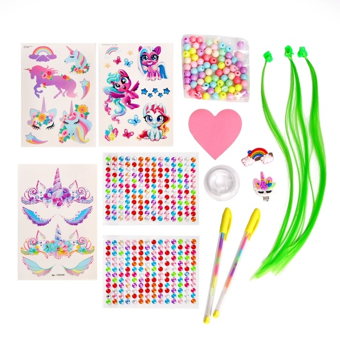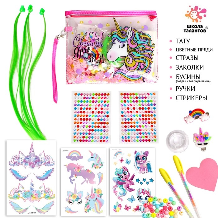 Набор с прядями, тату, стразами, в сумочке
