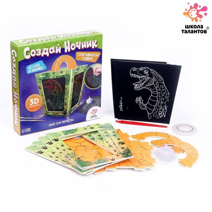 Набор для творчества «Создай ночник с гравюрой. Динозавр», 3Д конструктор, голографическая гравюра, 3+