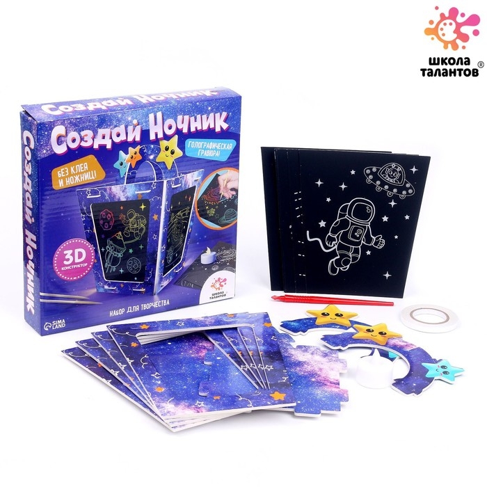 Набор для творчества «Создай ночник с гравюрой. Космос», 3Д конструктор, голографическая гравюра, 3+