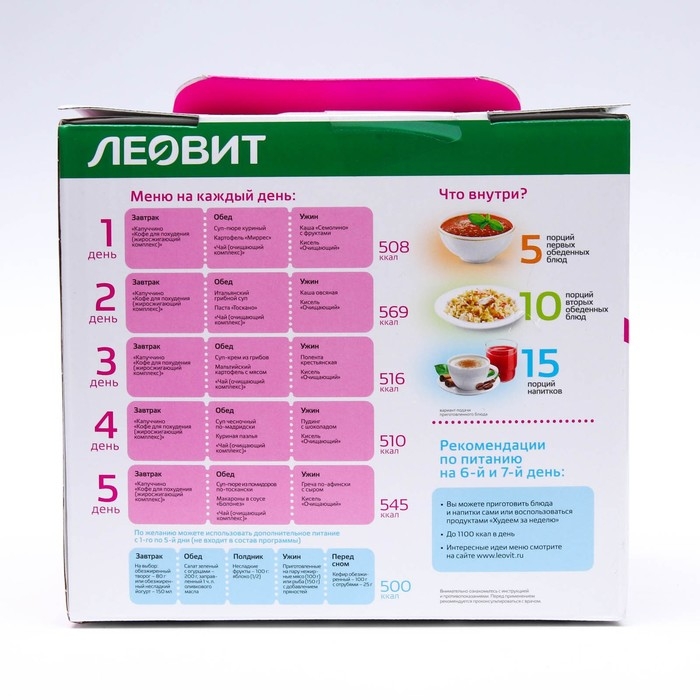 - разнообразный и полезный рацион на 5 дней;