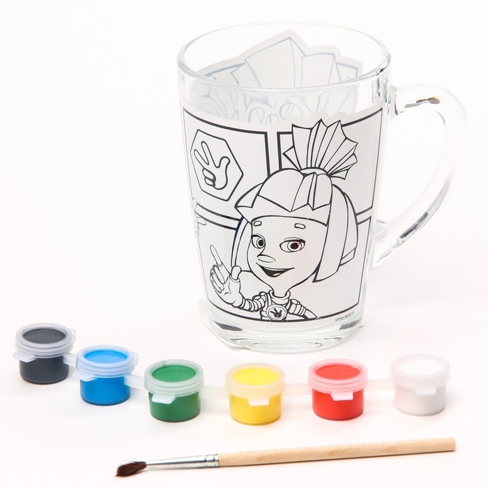 После высыхания краски хорошо держатся на стеклянной поверхности, так что кружку можно будет мочить и даже разогревать в микроволновой печи.