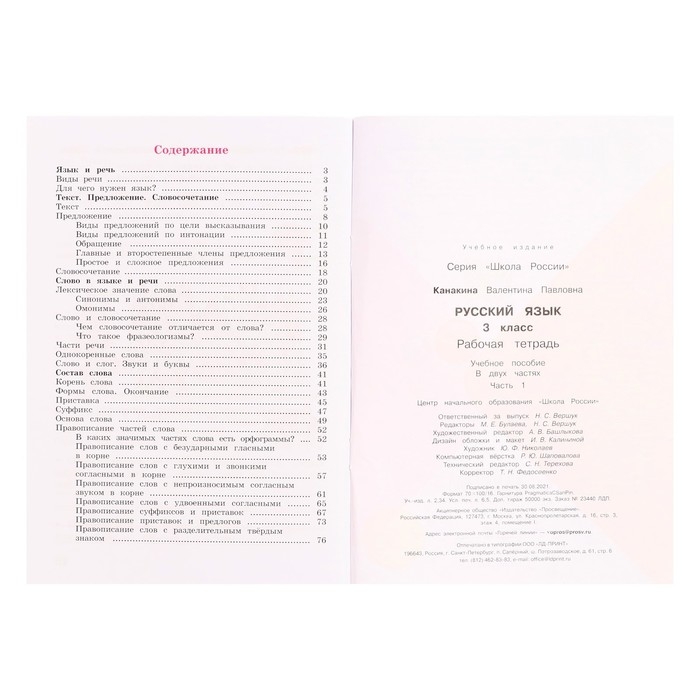 Русский язык 3 кл. Рабочая тетрадь В 2-х ч. Ч.1 Канакина /Школа России