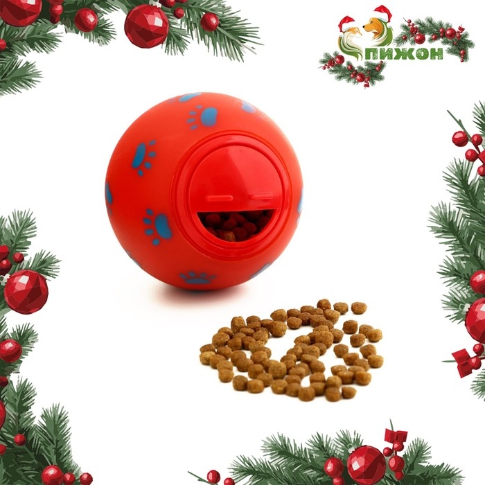 Игрушка-шар под лакомства "Лапки", 8 см, красная