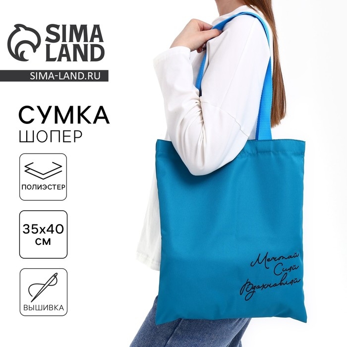 Шопер «Мечтай Сияй Вдохновляй», 35 х 0,5 х 40 см, вышивка, синий