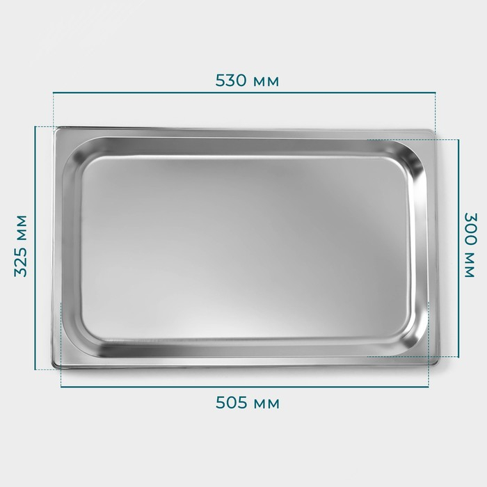 Гастроемкость 1/1 из нержавеющей стали, 20 мм, 53×32,5×2 см, толщина 0,8 мм