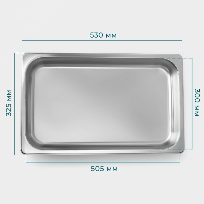 Гастроемкость 1/1 из нержавеющей стали, 65 мм, 53×33×6,5 см, толщина 0,8 мм