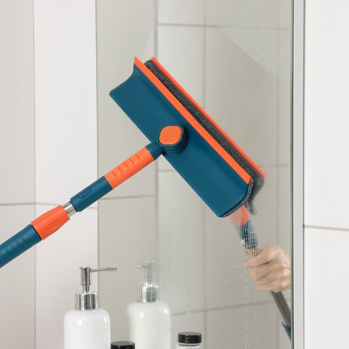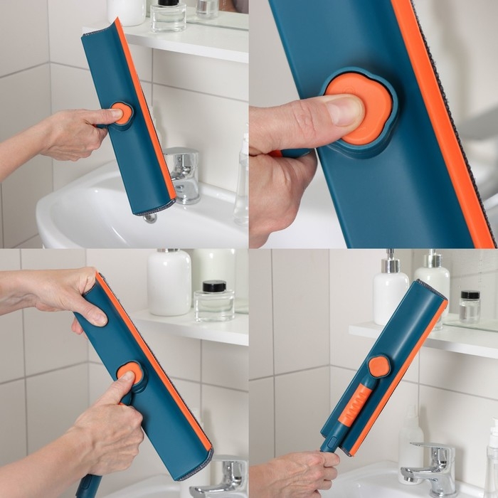 Щётка для окон Доляна, телескопическая ручка 49(75) см, водосгон 20 см, насадка поролон 20 см, цвет синий