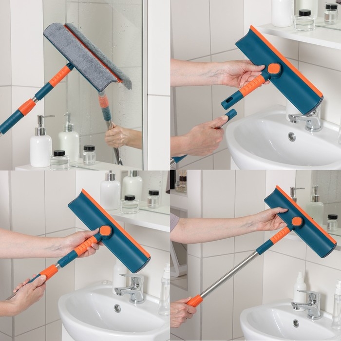 Щётка для окон Доляна, фиксатор, стальная телескопическая ручка, длина 55(83) см, водосгон силикон 18 см, насадка велюр 18×8 см