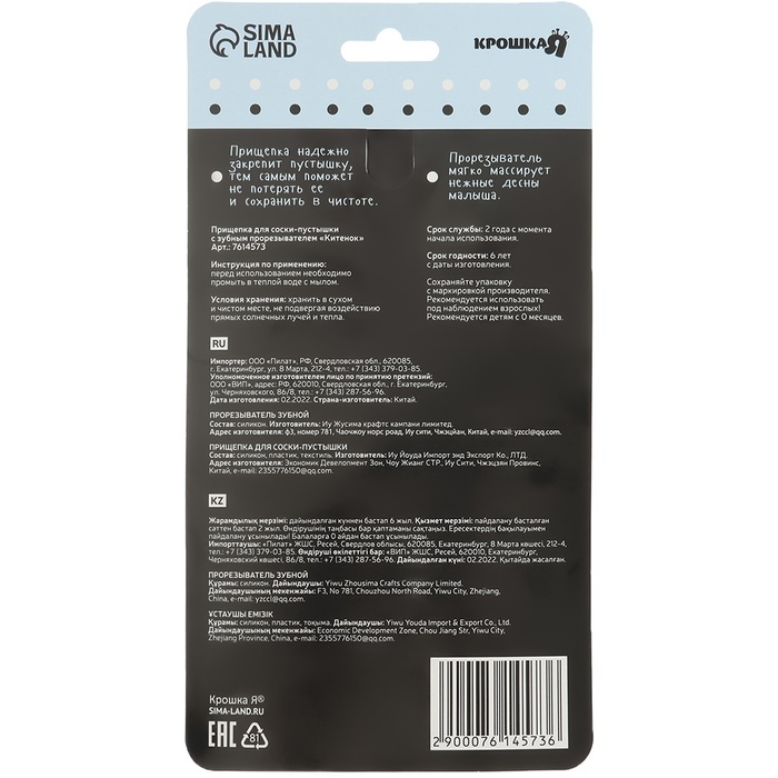 Особенности:рельефные элементы для массажа дёсен;мягкий и эластичный материал;оптимальные форма и размер для детской ладони;охлаждающий эффект.