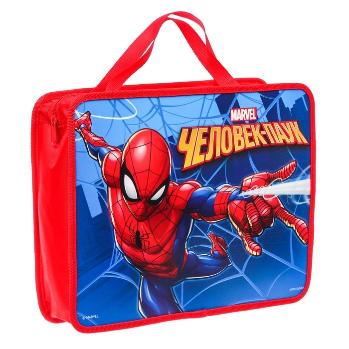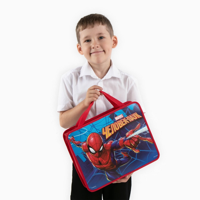 Папка пластиковая с ручками А4, на молнии, 75х330х260 мм, Человек-паук