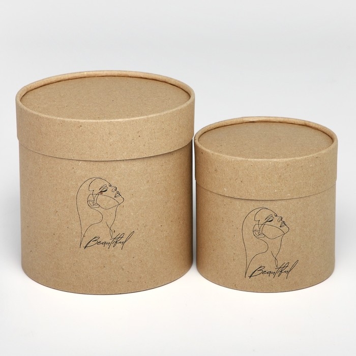 Набор шляпных коробок из крафта 2 в 1, упаковка подарочная, «Beautiful», 12 х 12, 15 х 15 см