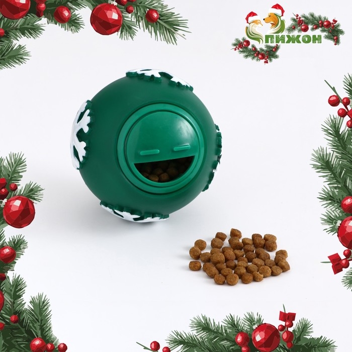 Игрушка-шар под лакомства "Снежинка", 8 см, зелёная