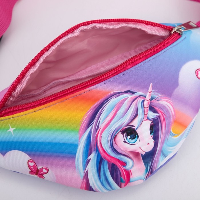 Сумка детская для девочки поясная «Единорог» 20 см х 10 см х 6 см