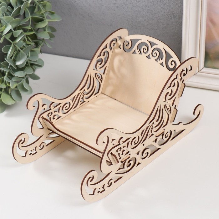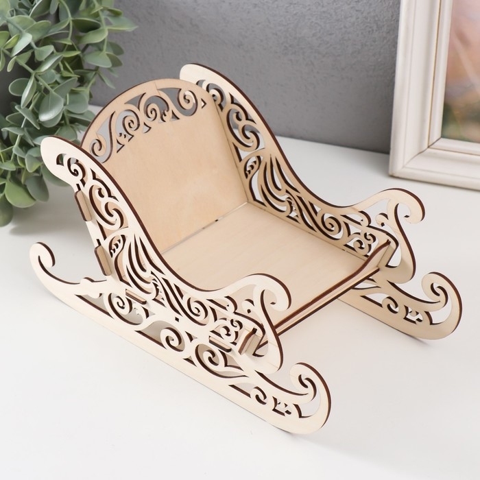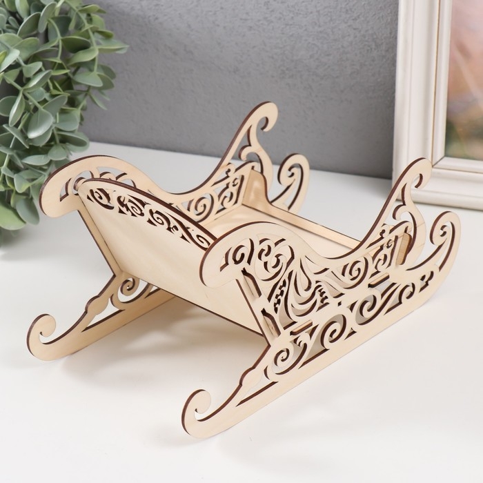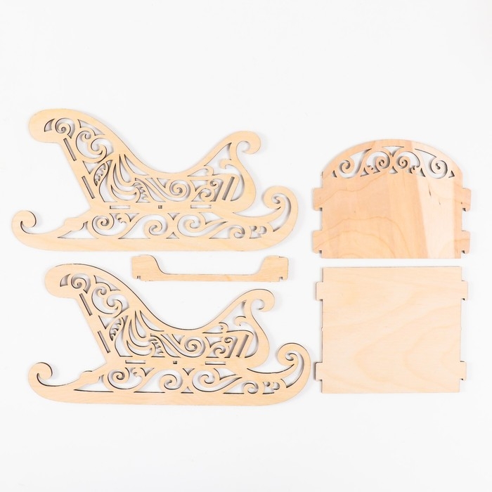 Шкатулка дерево для конфет "Новогодние Сани" 25х12х12,5 см (набор 5 деталей)