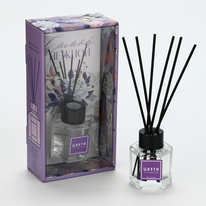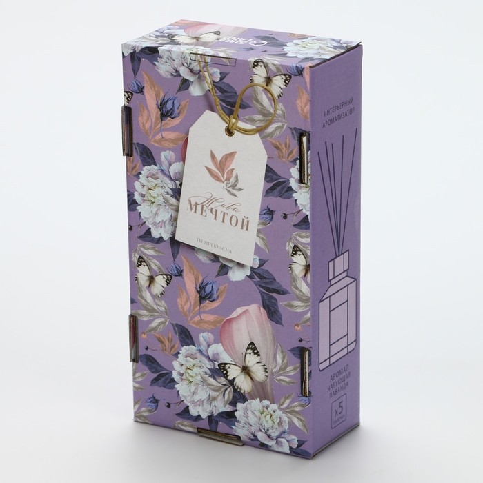 Диффузор ароматический палочки, ароматизатор для дома 50 мл. «Аромадиффузор: Живи мечтой», аромат лаванда, 10,2 х 19,6 х 5,2 см.