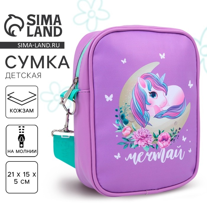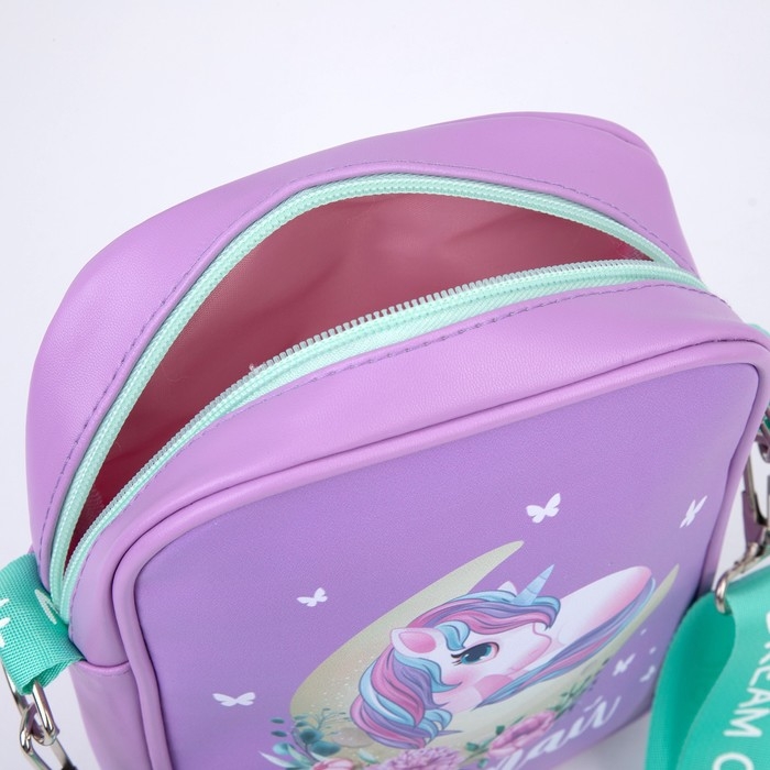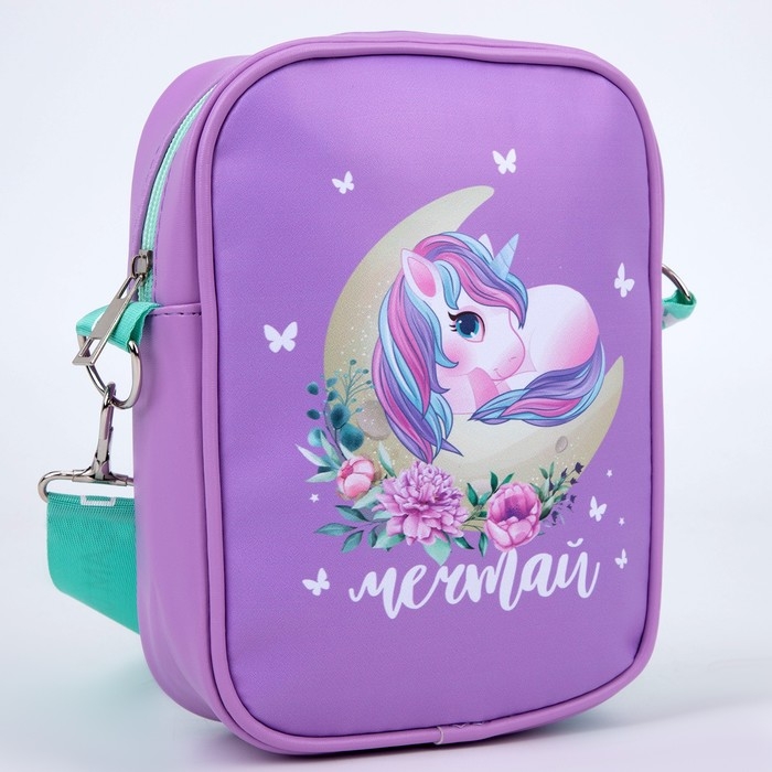 Сумка на ремешке детская для девочки «Единорог на луне», 15×5×21