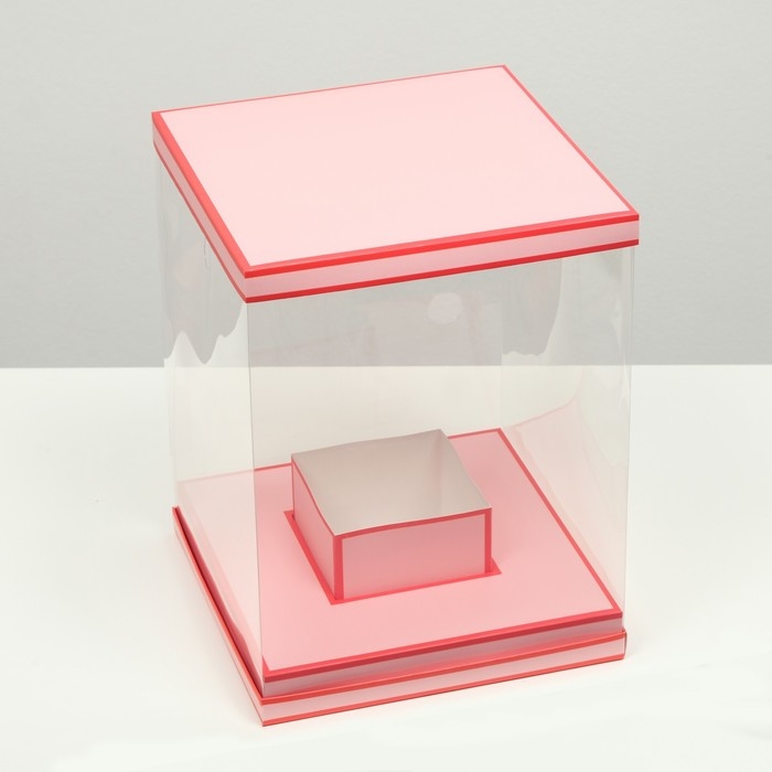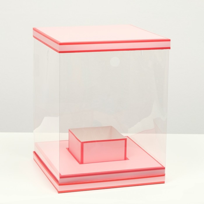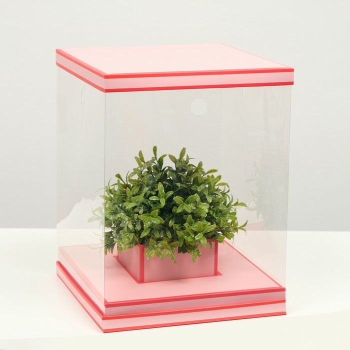 Коробка для цветов с вазой и PVC окнами складная, насыщенно-розовый, 23 х 30 х 23 см