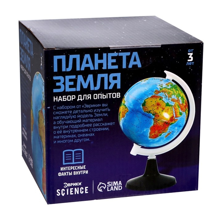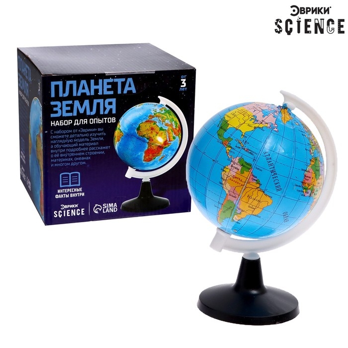 Набор для опытов «Планета Земля» поможет привить ребёнку любовь к географии. Глобус является отличным наглядным пособием, на котором вам будет удобно в простой и понятной форме объяснить, как устроена наша планета.