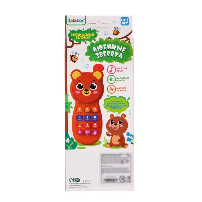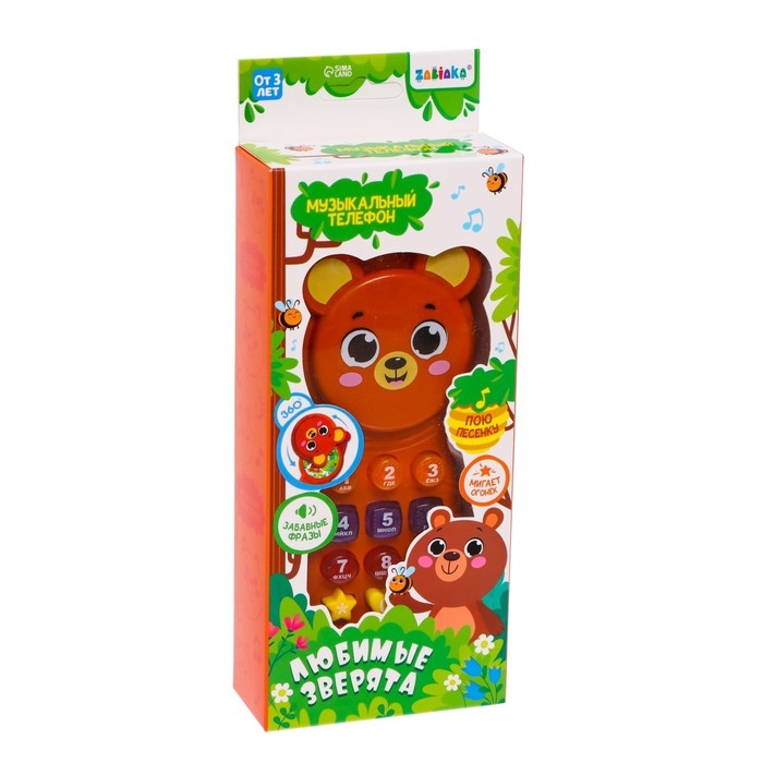 Музыкальный телефон «Любимые зверята», звук, свет, цвет коричневый