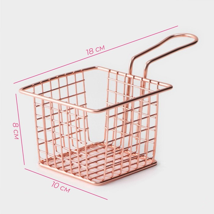 Корзинка для картофеля фри Доляна «Роял», 10×10×7,5 см, крупная сетка, цвет розовое золото