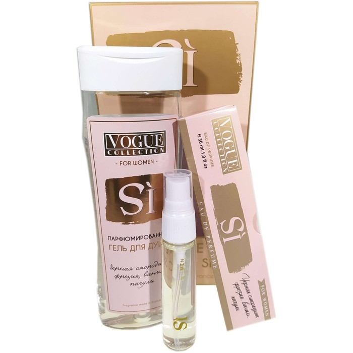 В женский подарочный набор входят парфюмированный гель для душа и парфюмированная вода. Тонкий и звенящий, он подчеркивает многогранные стороны и сложность натуры своей обладательницы. Si – это композиция из нот листа черной смородины и белой фрезии в окружении майской розы, ванили и пачули, ambroxan и древесных нот.