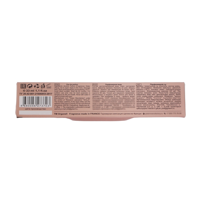 Парфюмированная вода: water (aqua), perfume (fragrance), peg-40 hydrogenated castrol oil, trideceth, propylene glycol.