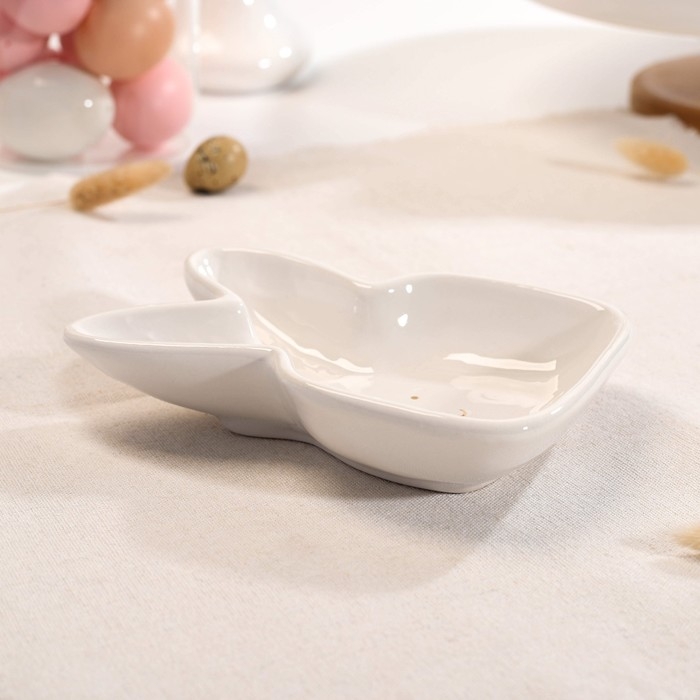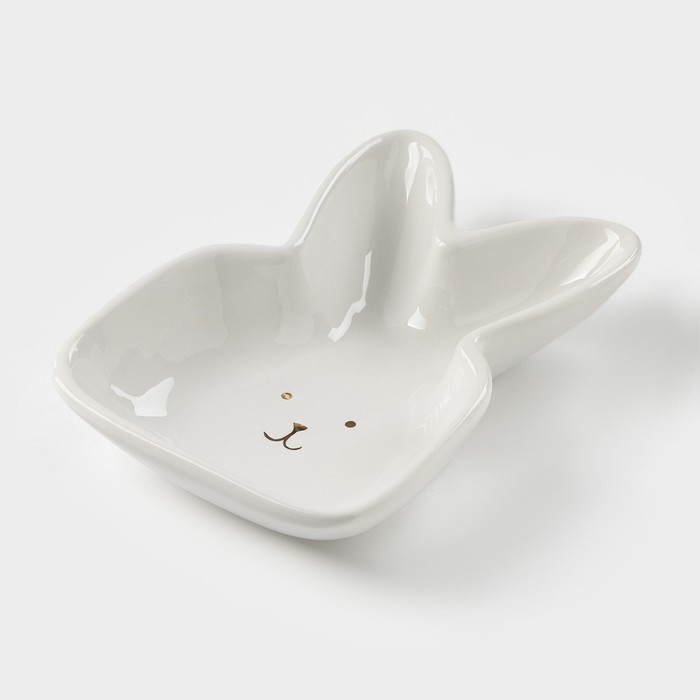 Блюдо Доляна «Зайка в золотом», 6,5×12×3,5 см, цвет белый