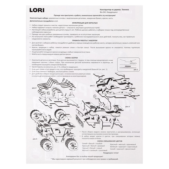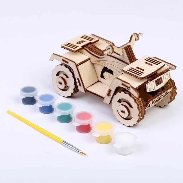 Конструктор из дерева «Квадроцикл», 14х7,7х8,3 см, в комплекте краски, кисточка и наждачная бумага