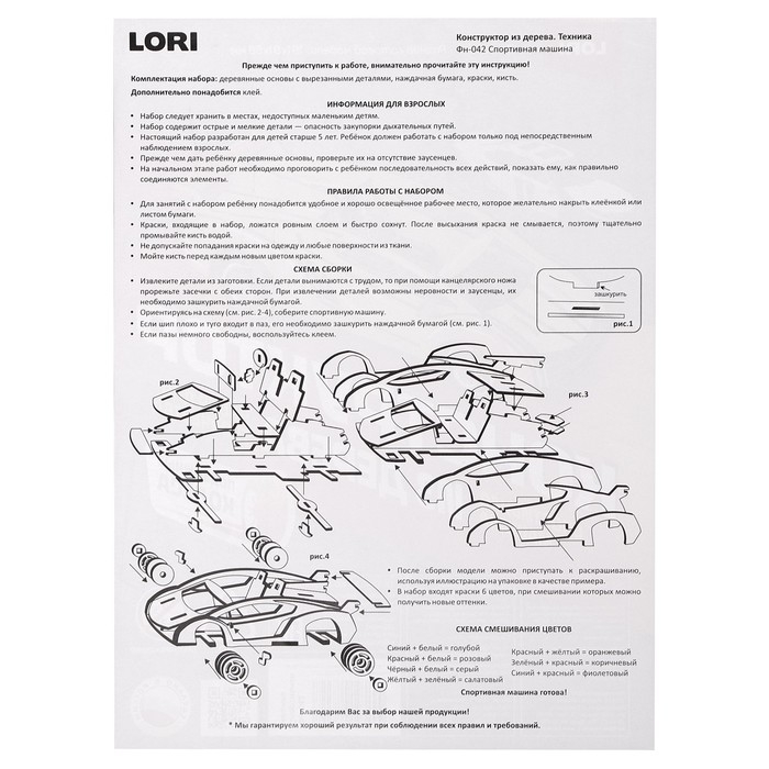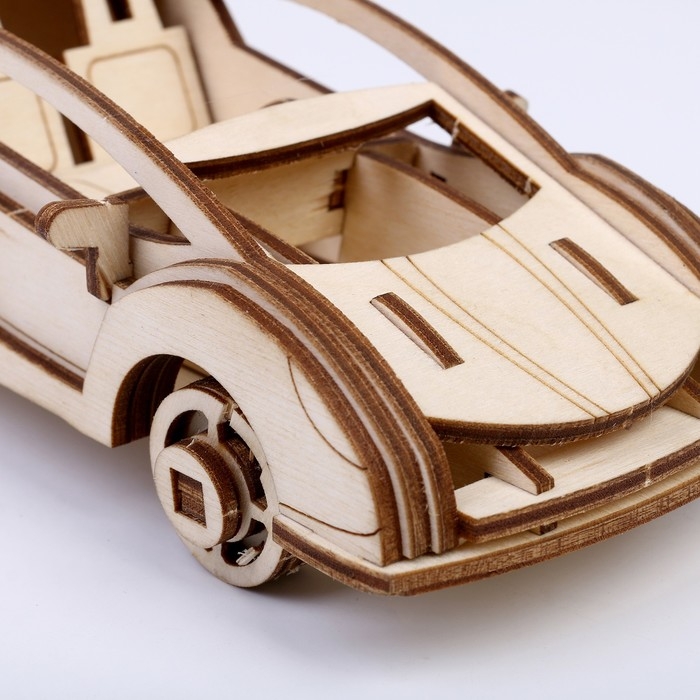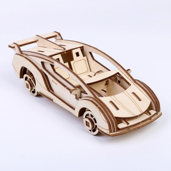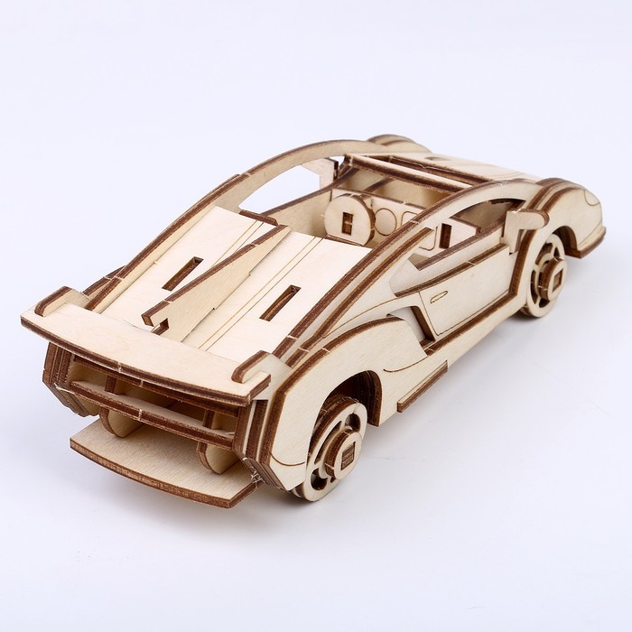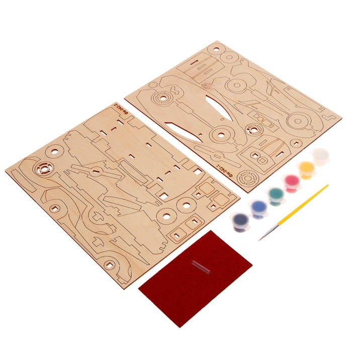 Конструктор из дерева «Спортивная машина», 19,1х8,1х5,8 см, в комплекте краски, кисточка и наждачная бумага