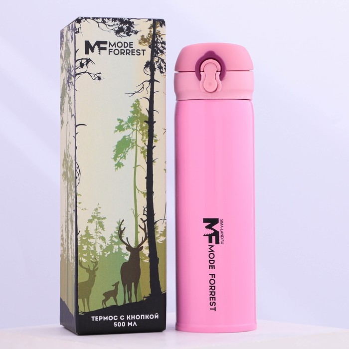 Термос с кнопкой Mode Forrest, 450 мл, розовый, время сохранения тепла 10-12 ч