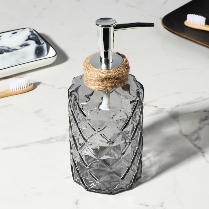 Дозатора для мыла объемом 330 мл., диспенсер выполнен из качественного стекла. Незаменимый аксессуар для тех, кто ценит комфорт и предпочитает экономно использовать жидкое мыло.